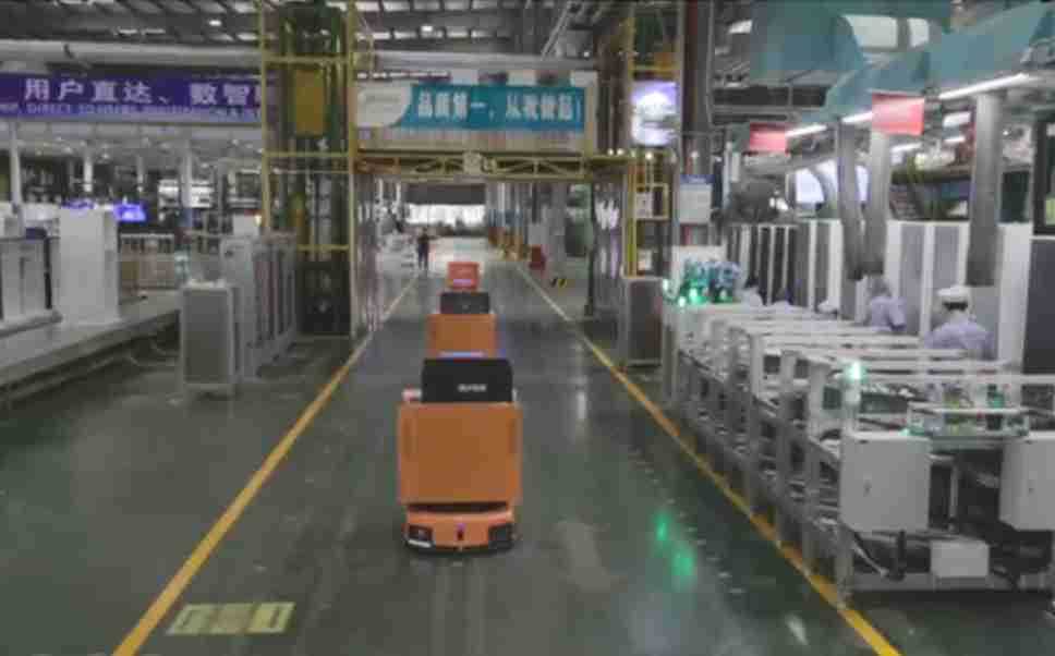 为车载冰箱物流配送打造的智能解决方案,,,包含产中物流通过潜伏举升AMR搬运至线边,,产后成品物流智能仓储,,,流程包含产中物流智能齐套入库,,,,线边安灯叫料AMR智能配送至线边,,成品入库、、、出库,,,通过无人堆高车机器人,,,智能仓储管理替代人工作业管理,,,,实现更高存储、、、、更高效率、、、、更具柔性化的解决方案。。。